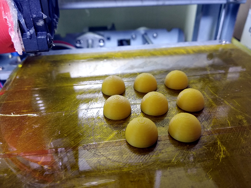 스타비 마개 출력 중. 노란 계란을 영상케 한다.